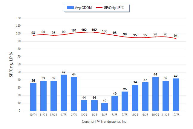 December 2025 Average Continuous Days on Market trend Remains Steady and Sold/Original List Price Ratio Remains Steady**