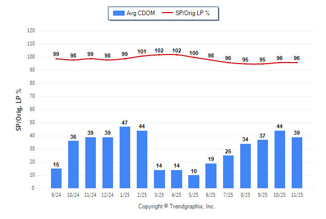 November 2025 Average Continuous Days on Market trend Remains Steady and Sold/Original List Price Ratio Remains Steady**