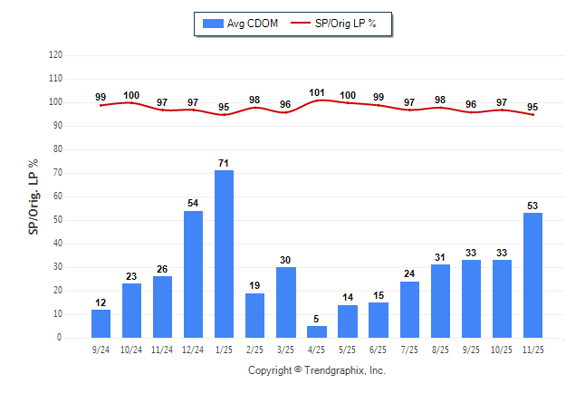 November 2025 Average Continuous Days on Market trend was Rising and Sold/Original List Price Ratio was Falling**