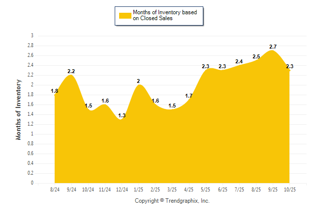 Curnt vs. Prev Month: Months of Inventory (Closed Sales) down-14.8%