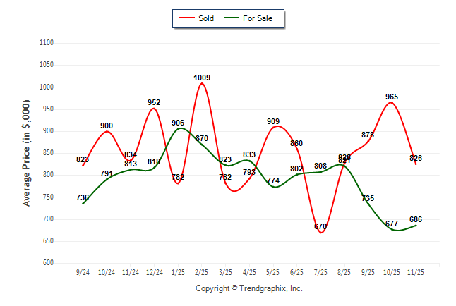 November 2025 Average For Sale Price was Neutral and Average Sold Price was Neutral**