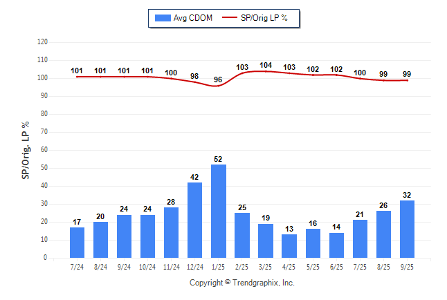 September 2025 Average Continuous Days on Market trend was Rising and Sold/Original List Price Ratio was Falling**