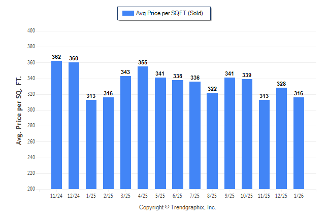 January 2026 Average Sold Price per Square Footage was Neutral**