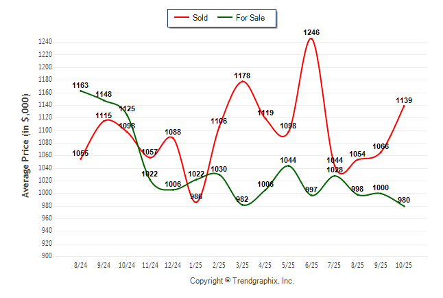 October 2025 Average For Sale Price was Depreciating and Average Sold Price was Neutral**