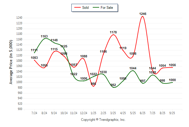 September 2025 Average For Sale Price was Neutral and Average Sold Price was Neutral**