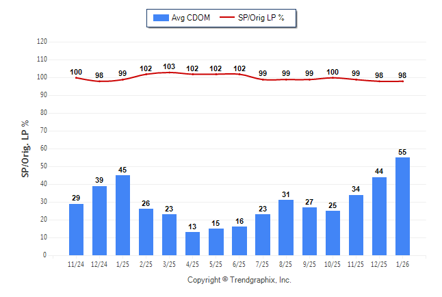 January 2026 Average Continuous Days on Market trend was Rising and Sold/Original List Price Ratio was Falling**