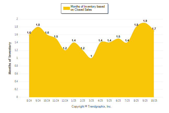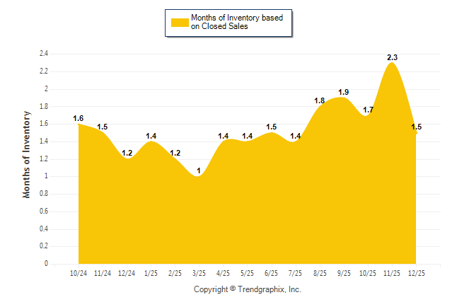 Curnt vs. Same Month 1 Yr Ago: Months of Inventory (Closed Sales)