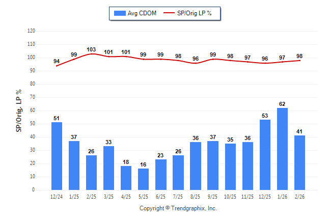February 2026 Average Continuous Days on Market trend Remains Steady and Sold/Original List Price Ratio Remains Steady**