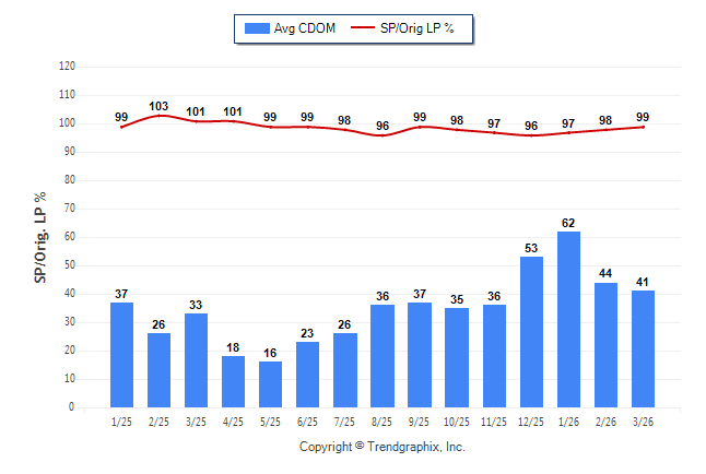 March 2026 Average Continuous Days on Market trend Remains Steady and Sold/Original List Price Ratio was Rising**