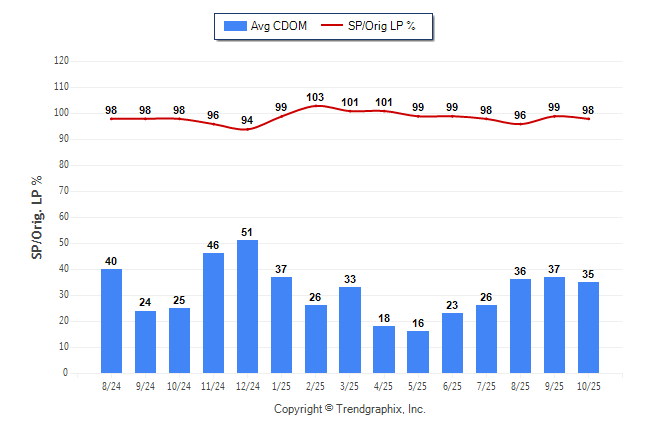 October 2025 Average Continuous Days on Market trend Remains Steady and Sold/Original List Price Ratio Remains Steady**
