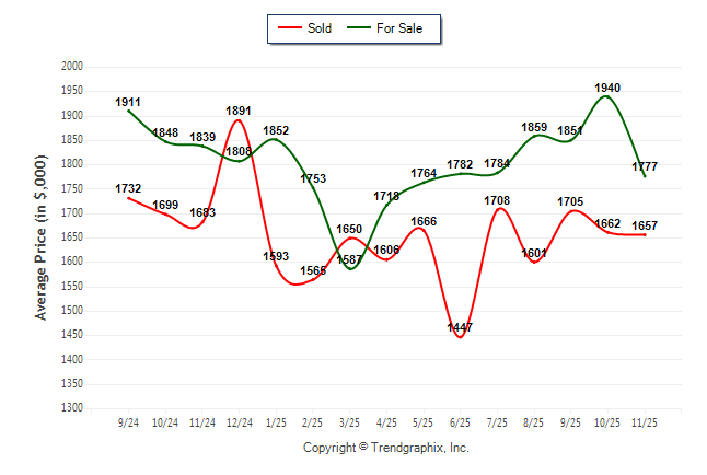 November 2025 Average For Sale Price was Neutral and Average Sold Price was Neutral**