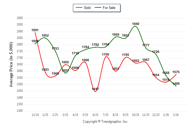 February 2026 Average For Sale Price was Depreciating and Average Sold Price was Neutral**