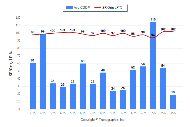 March 2026 Average Continuous Days on Market trend Remains Steady and Sold/Original List Price Ratio was Rising**