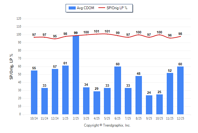 December 2025 Average Continuous Days on Market trend was Rising and Sold/Original List Price Ratio Remains Steady**