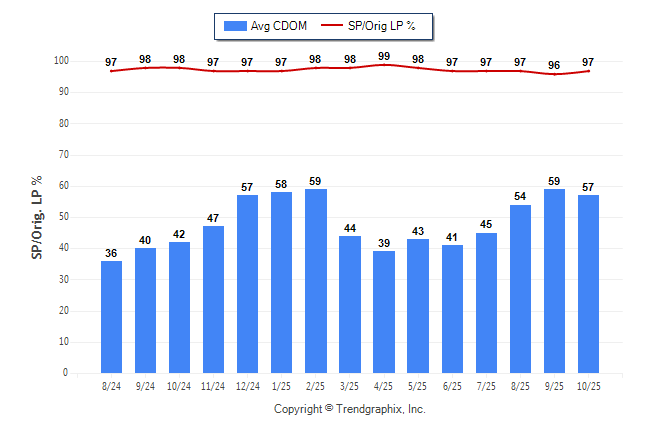 October 2025 Average Continuous Days on Market trend Remains Steady and Sold/Original List Price Ratio Remains Steady**