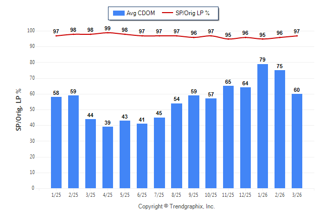 March 2026 Average Continuous Days on Market trend Remains Steady and Sold/Original List Price Ratio Remains Steady**