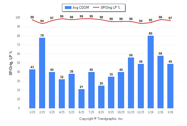 March 2026 Average Continuous Days on Market trend Remains Steady and Sold/Original List Price Ratio Remains Steady**
