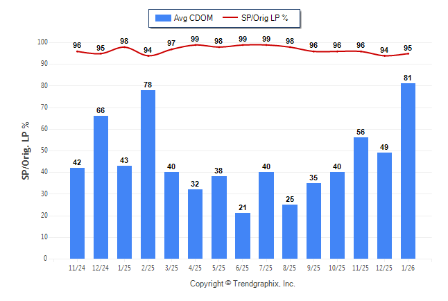January 2026 Average Continuous Days on Market trend was Rising and Sold/Original List Price Ratio Remains Steady**