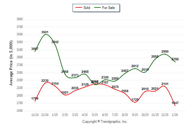 January 2026 Average For Sale Price was Neutral and Average Sold Price was Neutral**