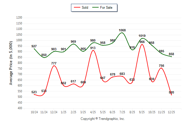 December 2025 Average For Sale Price was Depreciating and Average Sold Price was Depreciating**