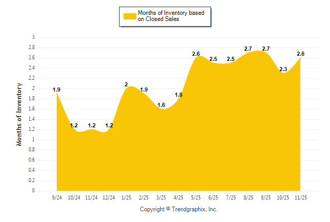 Curnt vs. Same Month 1 Yr Ago: Months of Inventory (Closed Sales)