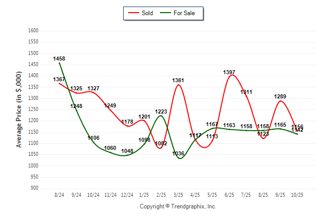 October 2025 Average For Sale Price was Depreciating and Average Sold Price was Neutral**