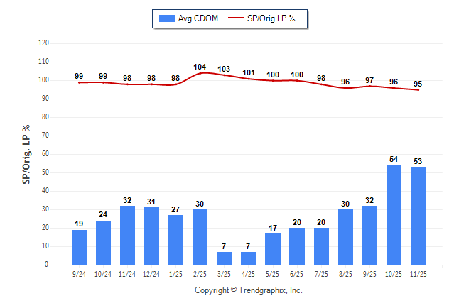 November 2025 Average Continuous Days on Market trend Remains Steady and Sold/Original List Price Ratio was Falling**