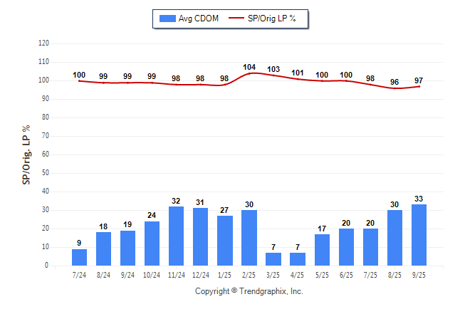 September 2025 Average Continuous Days on Market trend was Rising and Sold/Original List Price Ratio Remains Steady**