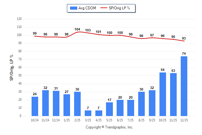 December 2025 Average Continuous Days on Market trend was Rising and Sold/Original List Price Ratio was Falling**