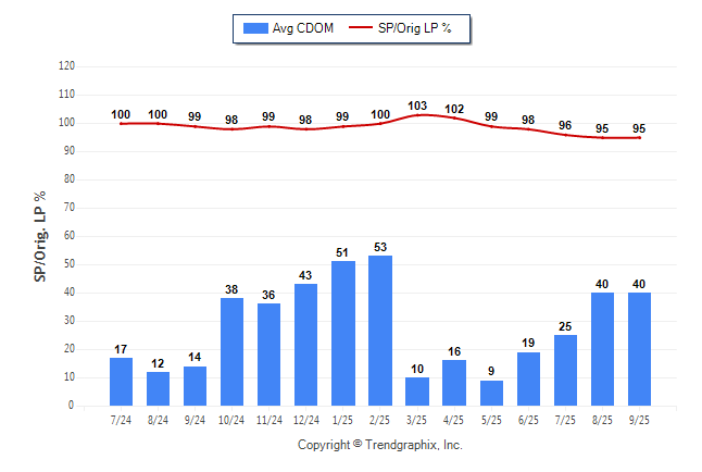September 2025 Average Continuous Days on Market trend was Rising and Sold/Original List Price Ratio was Falling**