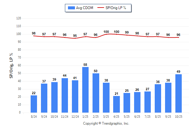 October 2025 Average Continuous Days on Market trend was Rising and Sold/Original List Price Ratio was Falling**