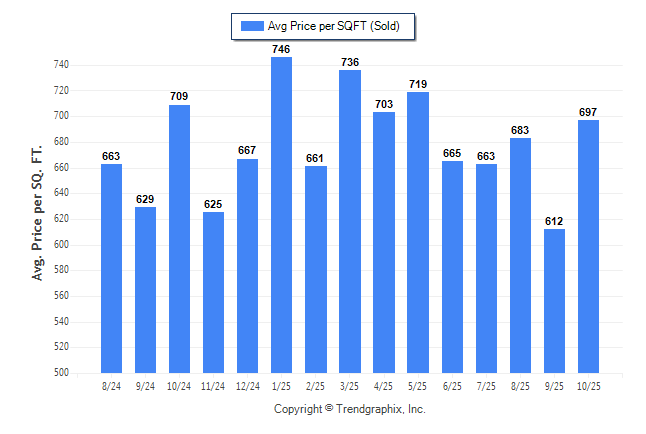 October 2025 Average Sold Price per Square Footage was Neutral**