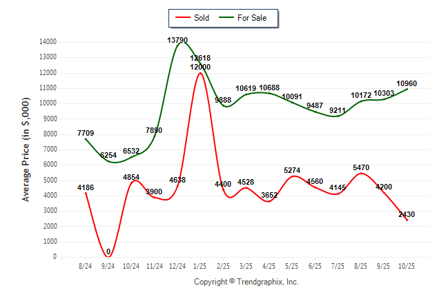 October 2025 Average For Sale Price was Appreciating and Average Sold Price was Depreciating**