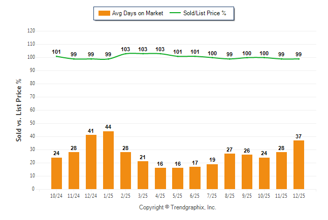 December 2025 Average Days on Market trend was Rising and Sold/List Price Ratio was Falling**