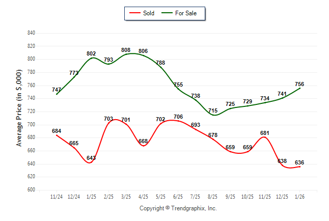 January 2026 Average For Sale Price was Appreciating and Average Sold Price was Depreciating**