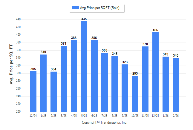 February 2026 Average Sold Price per Square Footage was Neutral**