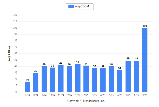 September 2025 Average Continuous Days on Market trend was Rising**