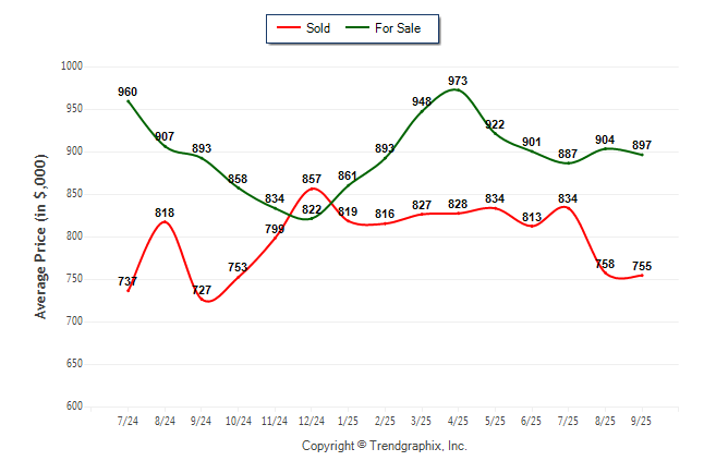 September 2025 Average For Sale Price was Neutral and Average Sold Price was Depreciating**