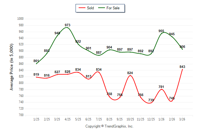 March 2026 Average For Sale Price was Neutral and Average Sold Price was Appreciating**