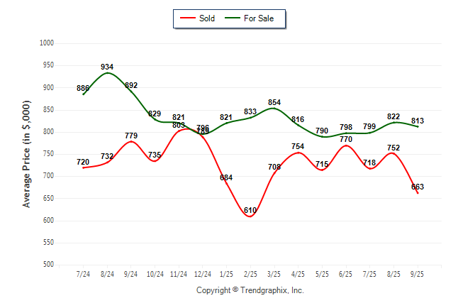 September 2025 Average For Sale Price was Neutral and Average Sold Price was Depreciating**