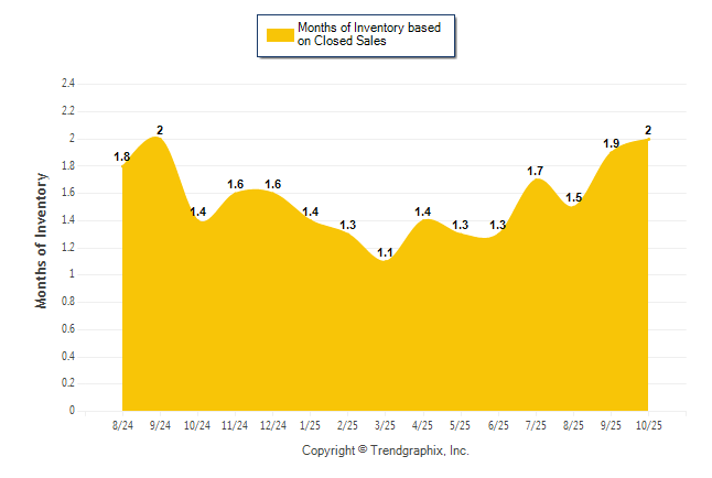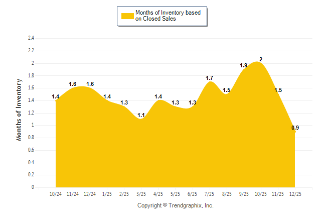 Curnt vs. Same Month 1 Yr Ago: Months of Inventory (Closed Sales)