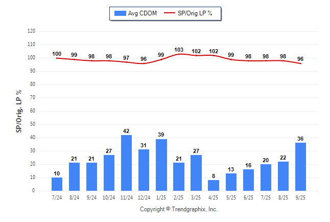 September 2025 Average Continuous Days on Market trend was Rising and Sold/Original List Price Ratio was Falling**