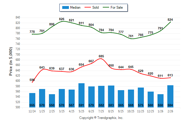 February 2026 Median Price was Neutral, Avg. For Sale Price was Appreciating, and Avg. Sold Price was Neutral**