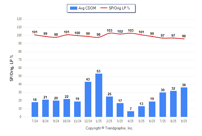 September 2025 Average Continuous Days on Market trend was Rising and Sold/Original List Price Ratio was Falling**