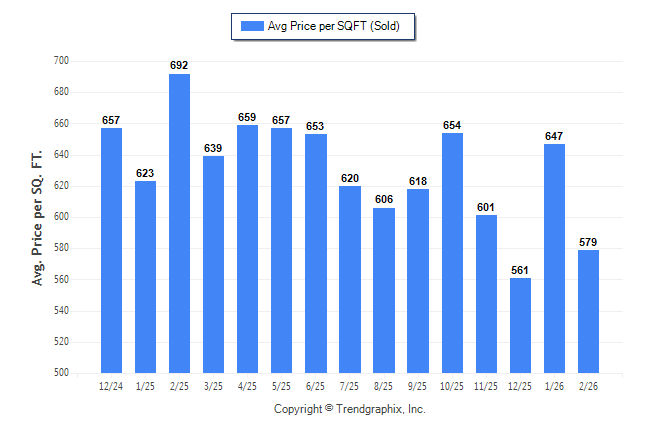 February 2026 Average Sold Price per Square Footage was Neutral**