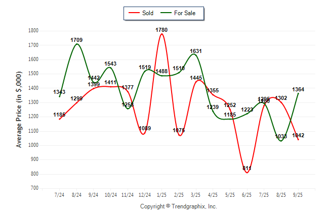 September 2025 Average For Sale Price was Appreciating and Average Sold Price was Depreciating**
