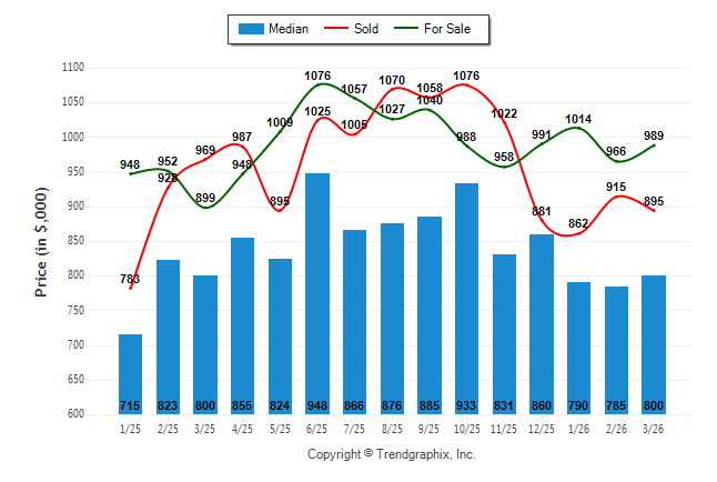 March 2026 Median Price was Neutral, Avg. For Sale Price was Neutral, and Avg. Sold Price was Neutral**