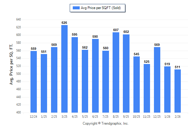 February 2026 Average Sold Price per Square Footage was Depreciating**
