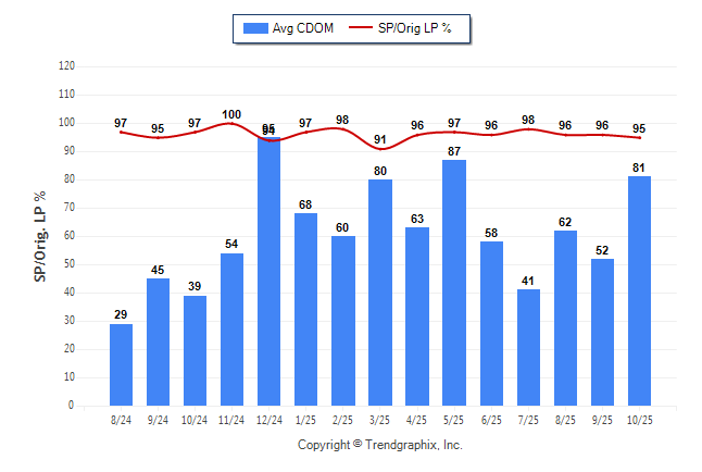 October 2025 Average Continuous Days on Market trend was Rising and Sold/Original List Price Ratio was Falling**