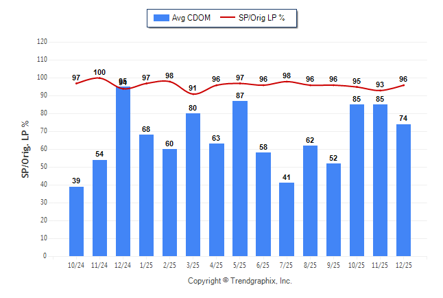 December 2025 Average Continuous Days on Market trend Remains Steady and Sold/Original List Price Ratio Remains Steady**